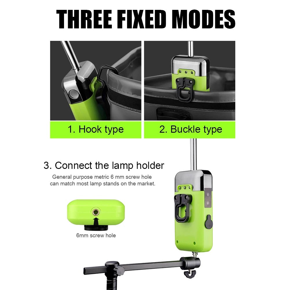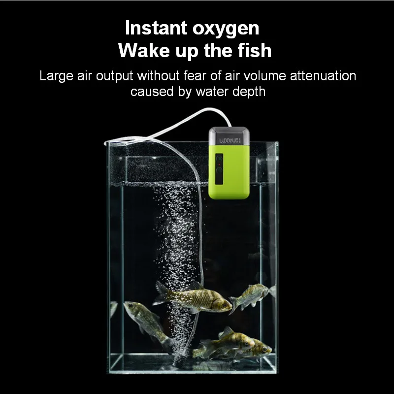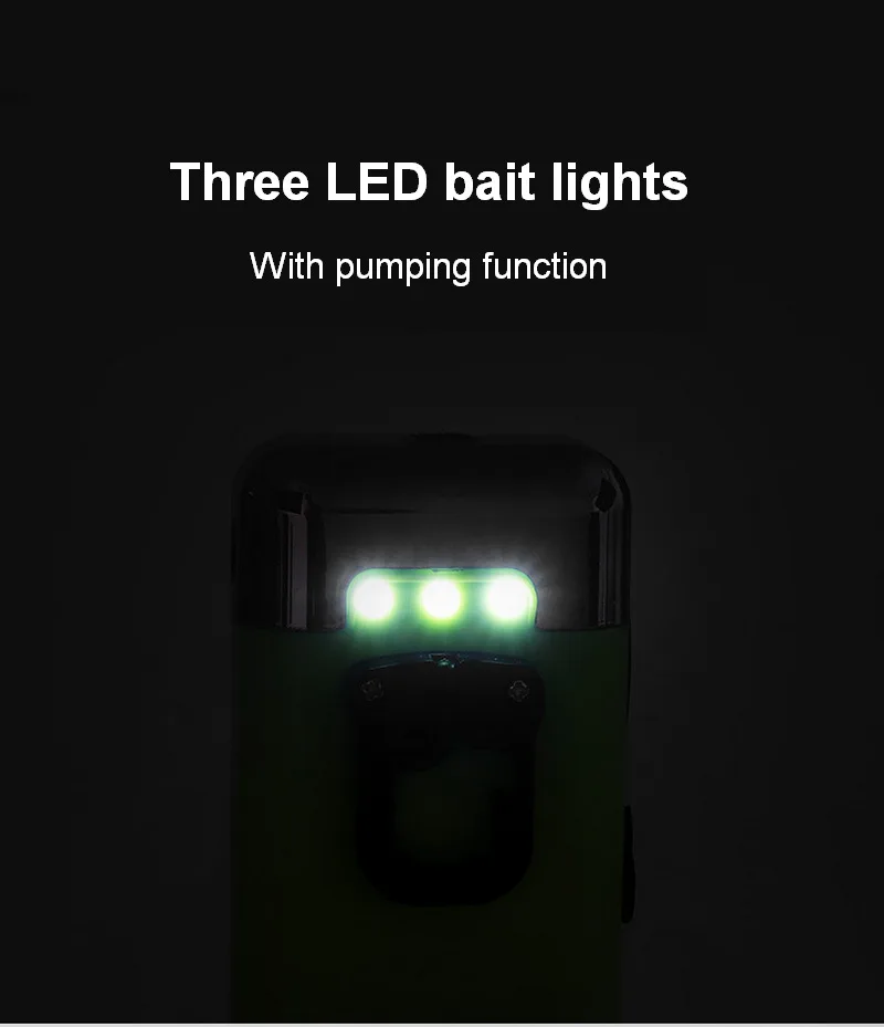 Built-in 2200mAh high-capacity battery charged once, can use 36 lighting hours, safe and environmental protection Intelligent infrared automatic induction, simple to liberate hands, easy to operate. High-power LED lighting, night fishing bait more convenient. 3 modes with multiple choices: intelligent mode; Long effluent/oxygenation model; Lighting mode Dynamic oxygen outlet, instantaneous "detonation oxygen" can increase oxygen rapidly to meet the demand of oxygen supply for catches.