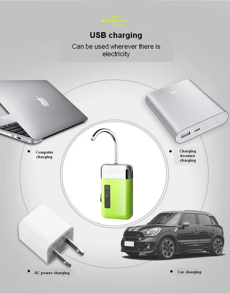 Type: Fishing Oxygen Pump Color: Green Material: ABS Product size: 12.5X7X3cm Battery capacity: 2200 mAh Air volume: 6L / min Pumping height: 1.8m Charging power: 240V-50HZ Aerobic endurance: 6H Lighting life: 36H