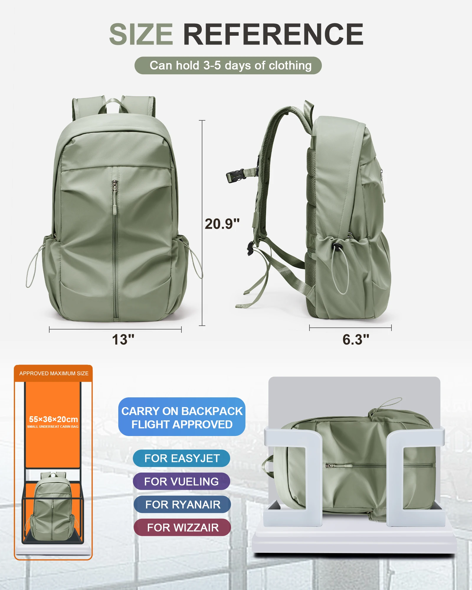 The backpack boasts a large capacity, ensuring you have ample space to carry all your travel essentials. From clothes and toiletries to laptops and gadgets, this backpack has room for everything you need on your journey.
