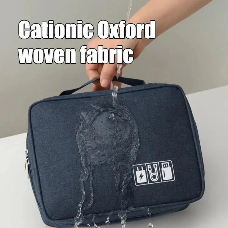 Made from premium cationic Oxford fabric, it offers waterproof and wear-resistant protection while remaining easy to clean. The elastic compartments, mesh dividers, and adjustable Velcro sections provide customizable storage, preventing scratches and clutter. Ideal for headphones, data cables, hard drives, power banks, and more, this organizer is a must-have for tech lovers on the go.