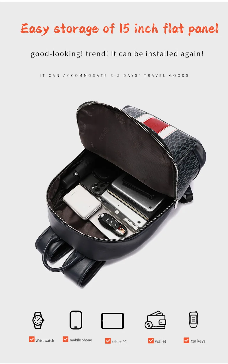 Elevate your style with our Men's Backpack crafted from fashionable PU material. Its sleek and sophisticated design adds a touch of elegance to your everyday look, making it the perfect accessory for fashion-forward individuals.